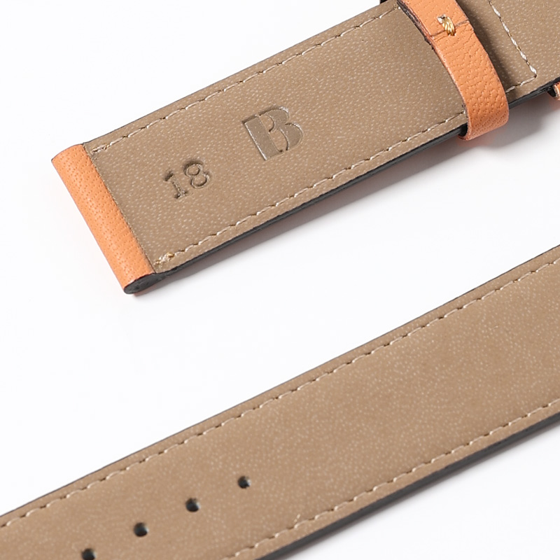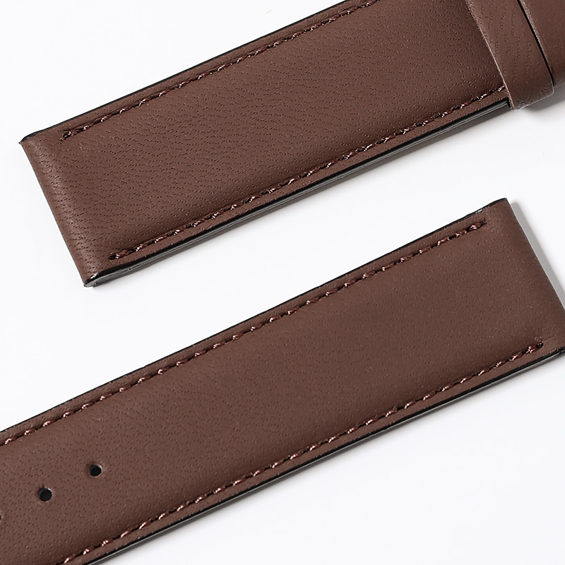 発色の美しさと柔らかな質感を兼ね備えたゴート革の時計バンドは、普段使いはもちろん、きちんと感が求められる場面や贈り物にもおすすめ。