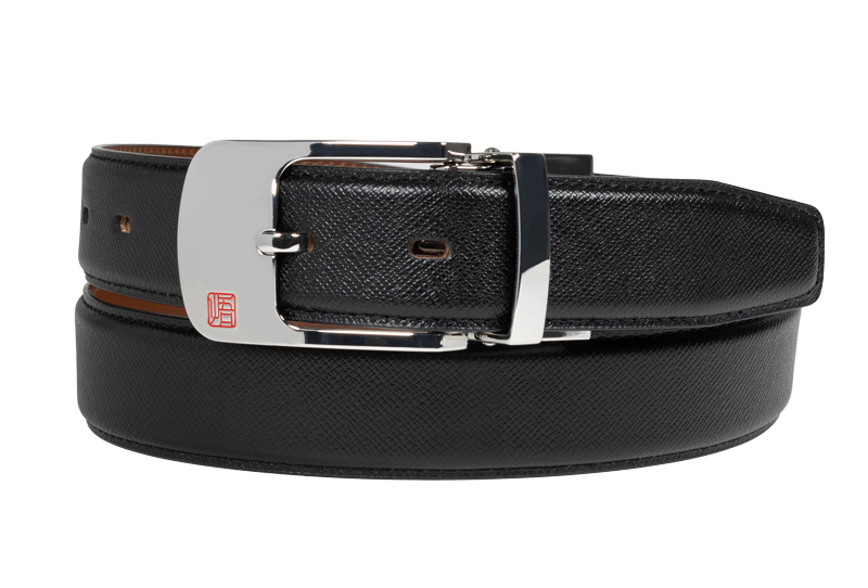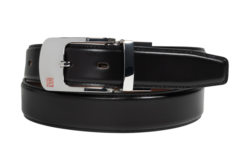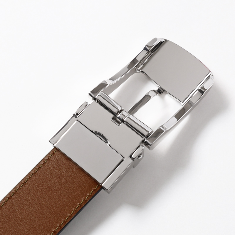 ベルトの幅はビジネスシーンに適した約3cmで、スーツの重厚感を損なうことなく、すっきりとした印象を与えます。