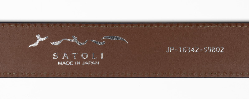 バックルには「さとり」のロゴを印字しており、重厚な作りが高級感を演出します。