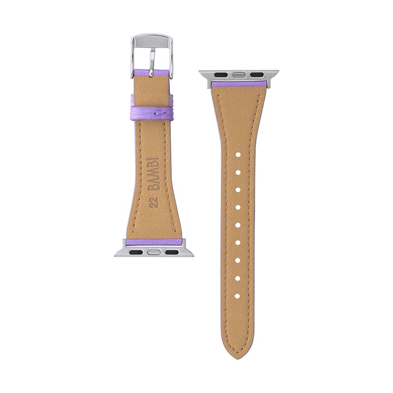 表革にはグレーやパープルなどの流行色を取り入れ、パール加工を施しました。