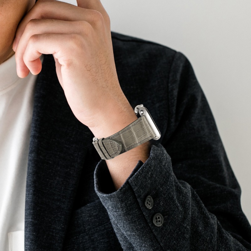 バンビが特許を取得している防水加工クロコダイル「プレミアムクロコ」のアップルウォッチ対応モデルです。