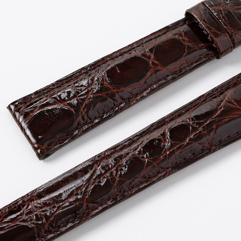 カイマンの背中・肚の部分は非常に硬いため、時計バンドには脇腹から背中にかけての柔らかな部分のみを使用しています。