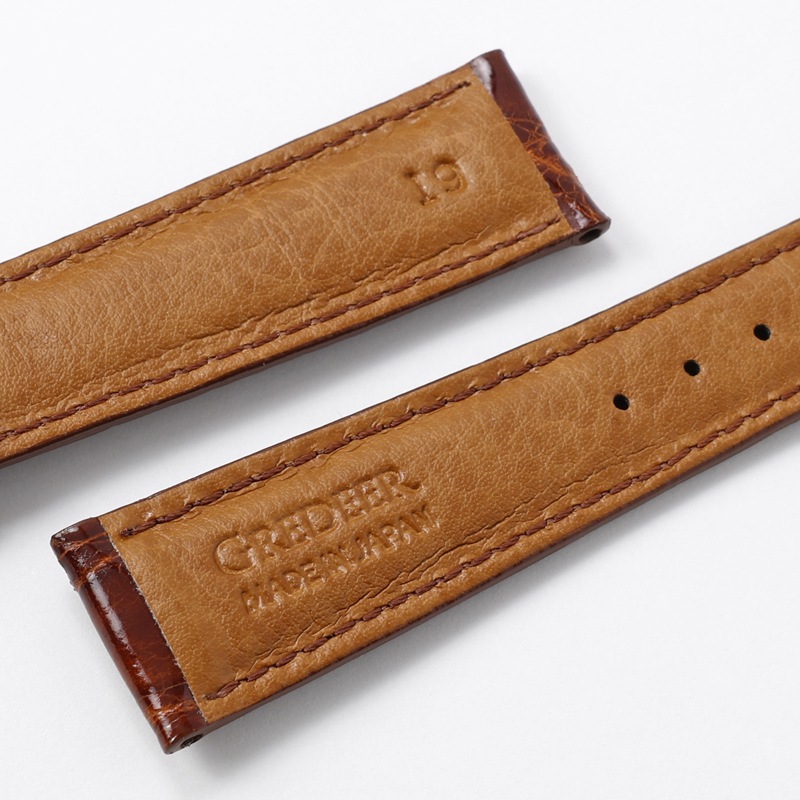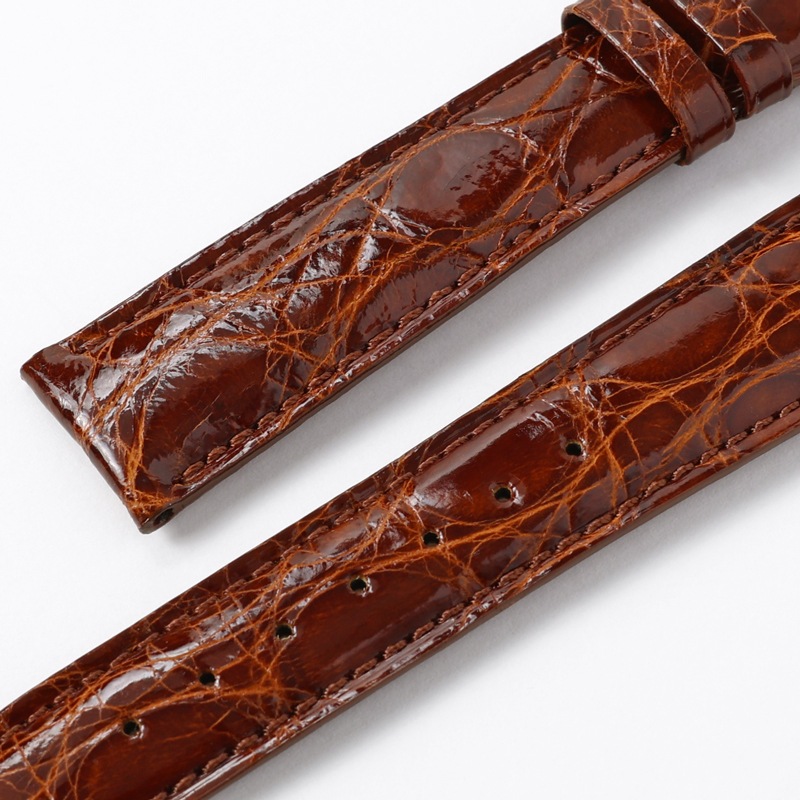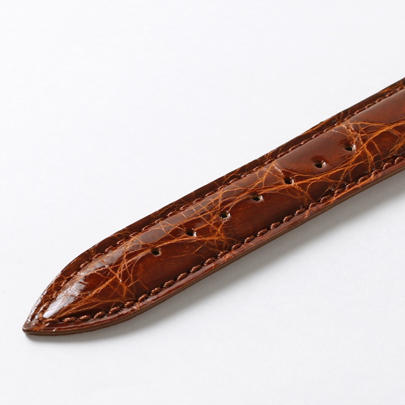 カイマンの背中・肚の部分は非常に硬いため、時計バンドには脇腹から背中にかけての柔らかな部分のみを使用しています。