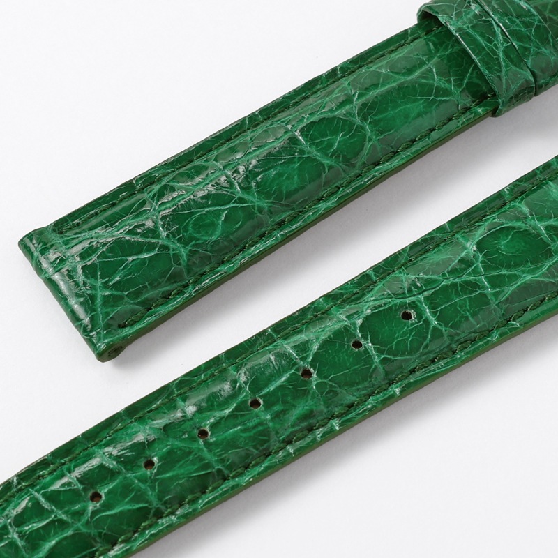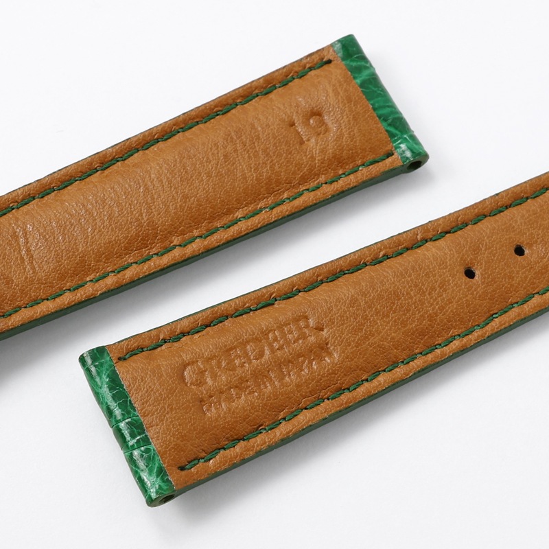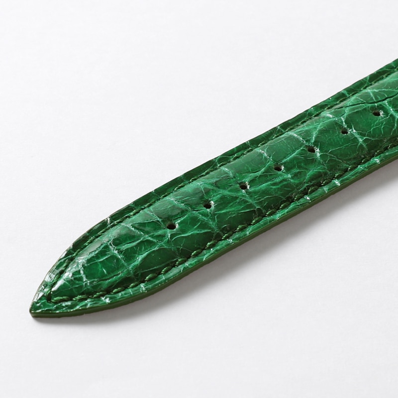 カイマンの背中・肚の部分は非常に硬いため、時計バンドには脇腹から背中にかけての柔らかな部分のみを使用しています。