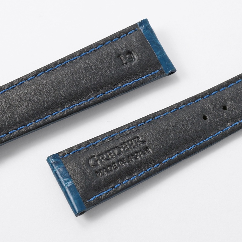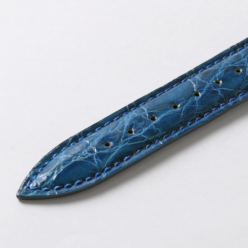 カイマンの背中・肚の部分は非常に硬いため、時計バンドには脇腹から背中にかけての柔らかな部分のみを使用しています。