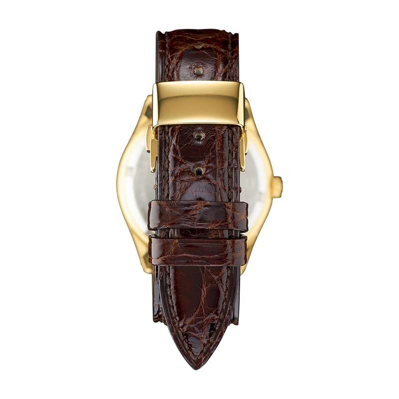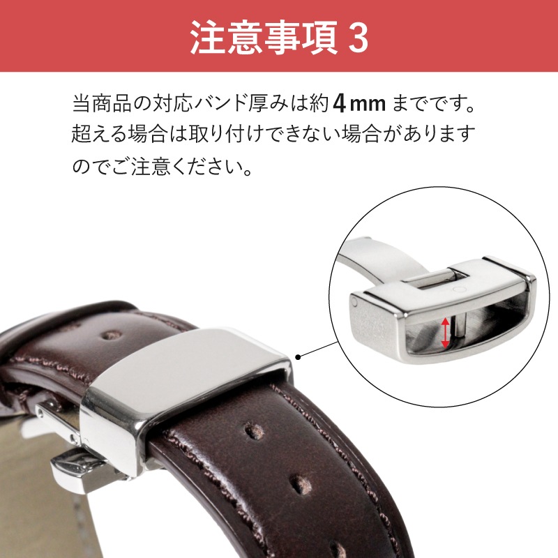 着脱時に小穴につく棒を通す美錠タイプのレザーバンドと比べ、時計を落下させるリスクが軽減し、大切な時計をより安全にお使いいただけます。