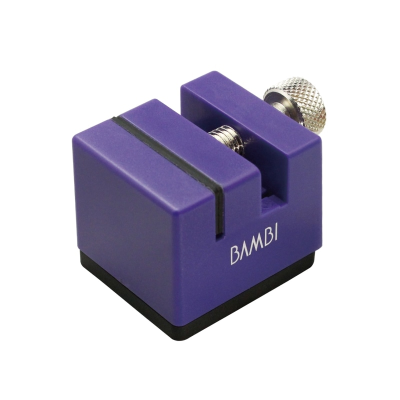 バンドをはさむ部分はキズをつけないゴム素材で丸い形状のバンドもしっかりと固定ができます。