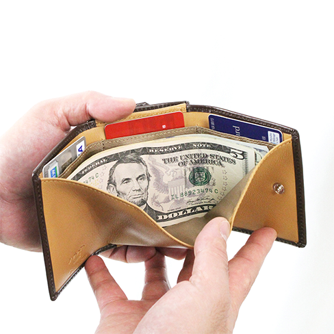 手のひらサイズのコンパクトさながら、必要十分な収納力を備えた三つ折り財布です。