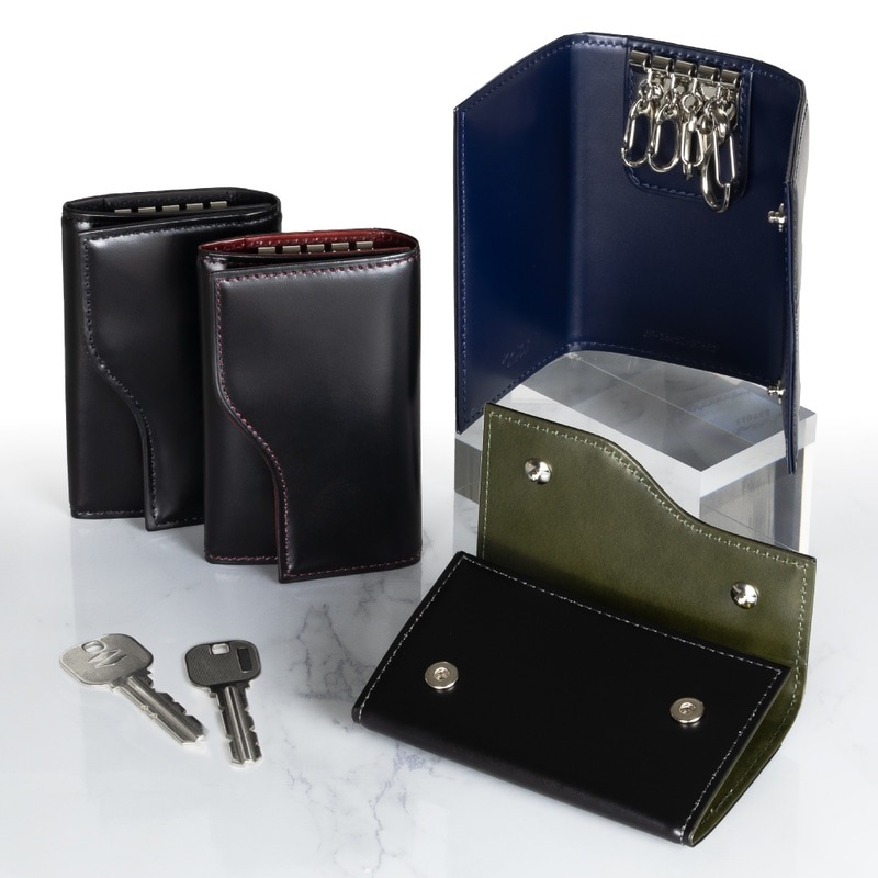 表裏の両面に色違いの松阪レザーを使用した、贅沢なキーケースです。