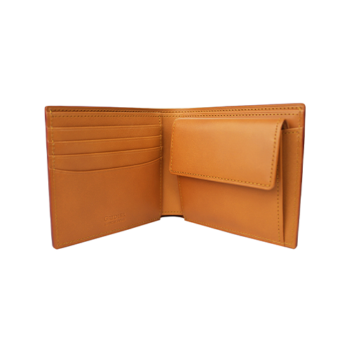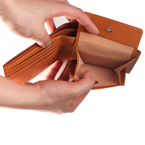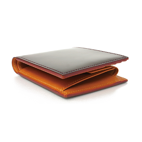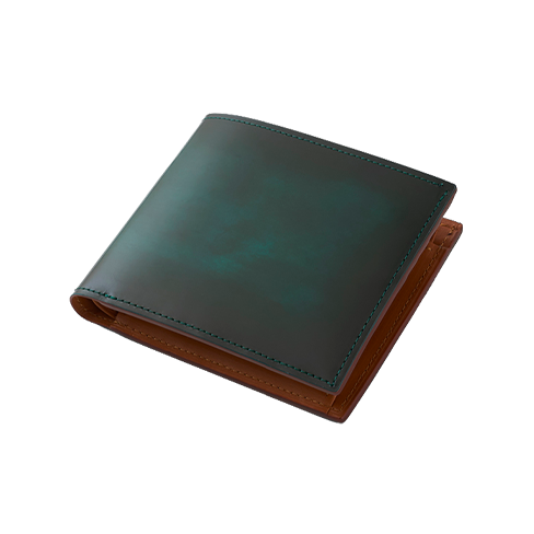 二層に重ねた色の濃淡が美しいアドバンティック仕上げの小銭入れ付二つ折り財布です。