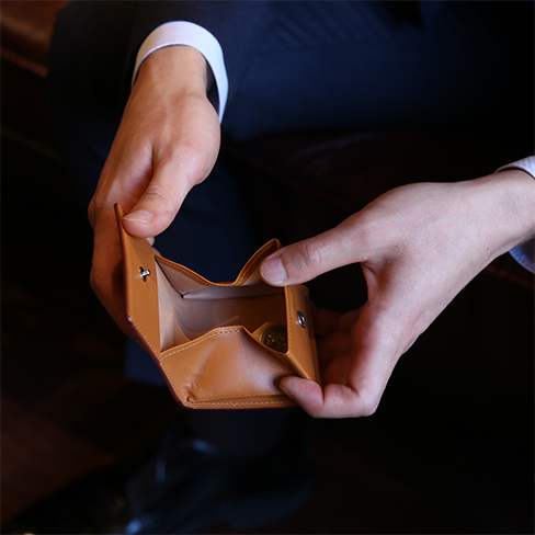 二層に重ねた色の濃淡が美しいアドバンティック仕上げの小銭入れです。
