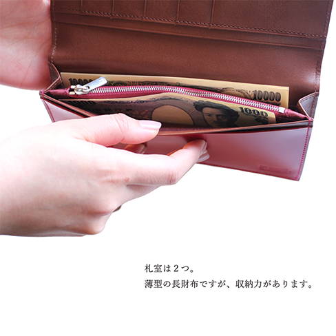 グレディアのコードバンは水染め製法を採用。透明感あるナチュラルな艶感に仕上げた革をスマートで使用感の良い小物に仕立てました。