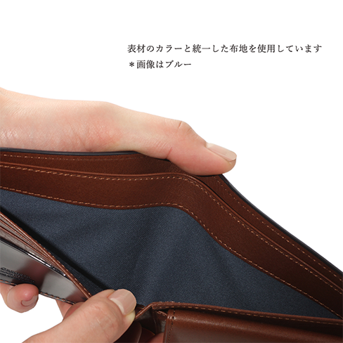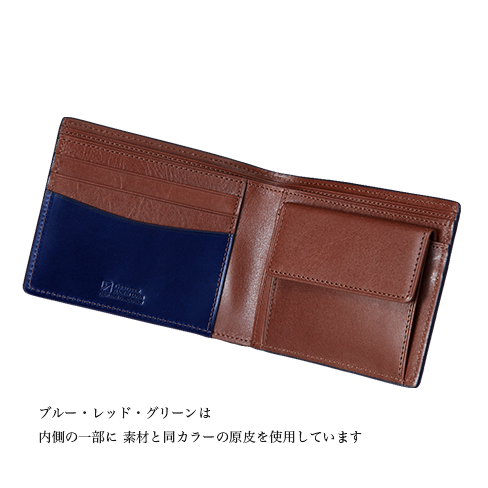 コードバン素材の二つ折り財布です。