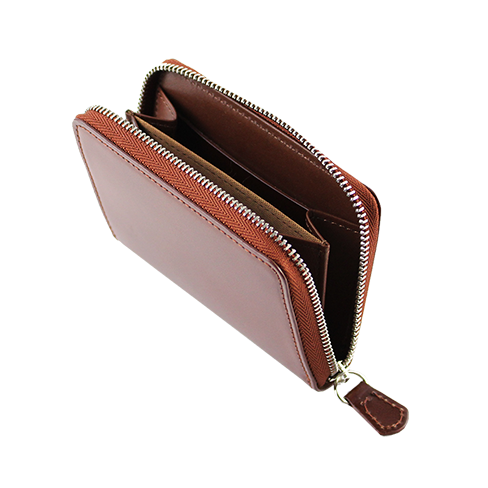ラウンドファスナータイプで大きく開くポケットが2つと、カード仕切りも2つありミニ財布としても十分使用できる構造です。