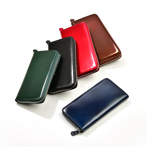 グレディアのコードバンは水染め製法を採用。透明感あるナチュラルな艶感に仕上げた革をスマートで使用感の良い小物に仕立てました。