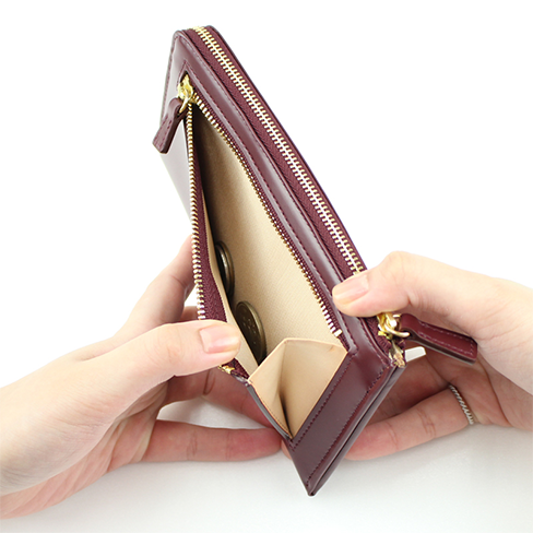 1万円札がぴったり入るコンパクトさとファスナーの開閉がしやすいL字型の長財布です。