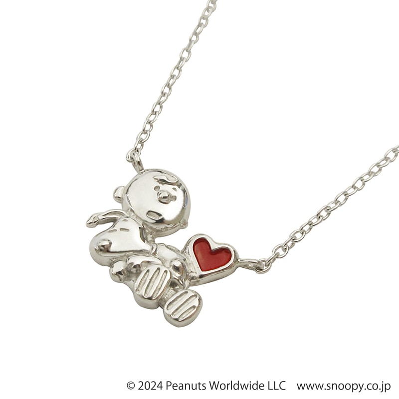 飼い主のチャーリー・ブラウンの膝で安心してお昼寝をするスヌーピーがモチーフになった可愛らしいペンダント。