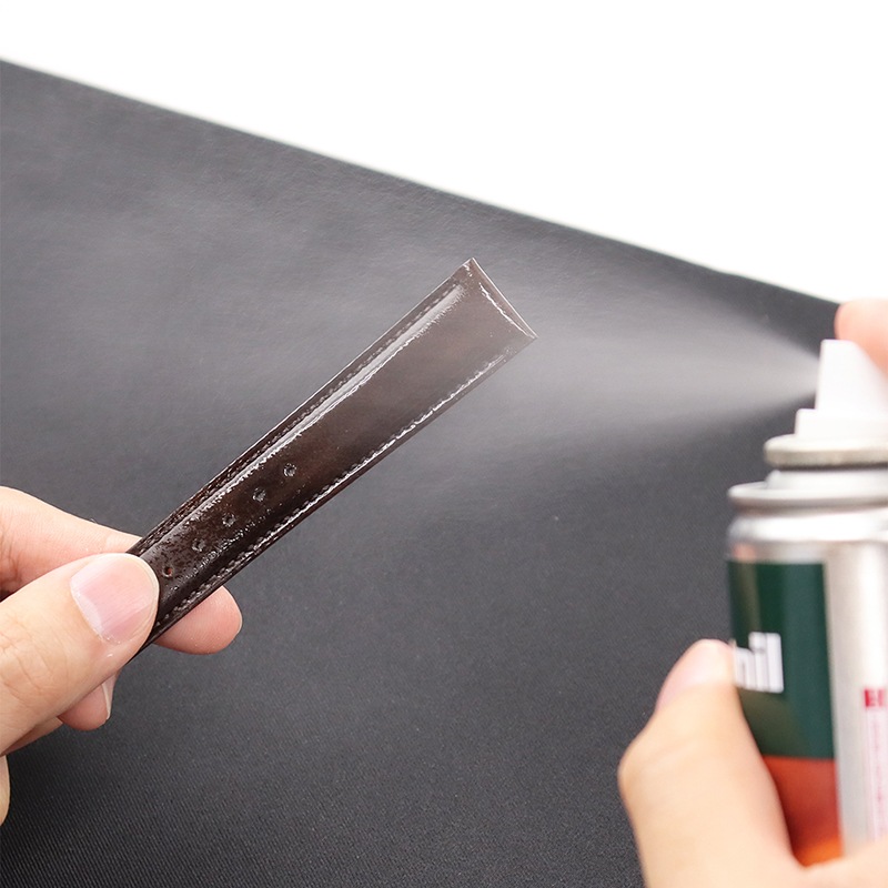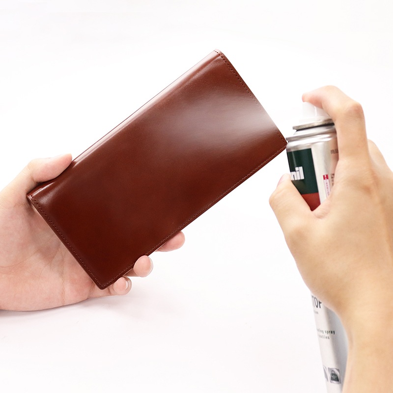 皮革表面を覆わず、皮革に浸透するタイプのフッ化炭素樹脂を配合した防水スプレーです。