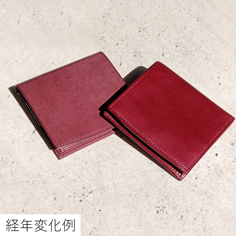 使い始めは表面のワックスにより、くすんだ色をしていますが、使い込むことで宝石のような艶と色味が増していき、世界に一つだけの経年変化を愉しむことができます。
