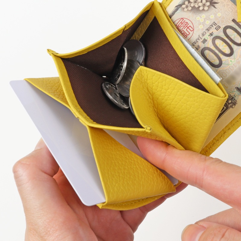 昨今のミニ財布でありがちな「小銭入れが使いにくい」、「カードを重ねて入れると取り出しにくい」といった悩みを解消しました。