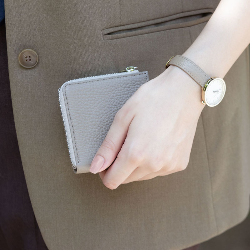 薄さと使いやすさを実現した L字ファスナーのミニ財布です。