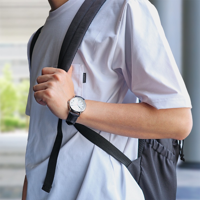 表面には撥水加工を施した牛革を使用し、裏面にはTPUラバー素材を組み合わせることで、高級感と機能性を兼ね備えた時計バンドに仕上げました。