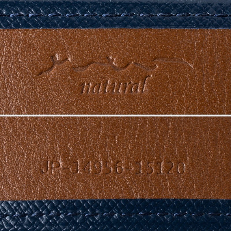 松阪レザーには食肉同様に管理が革そのものにされているため、財布の内側には追跡用の個体識別ナンバーが刻印されています。