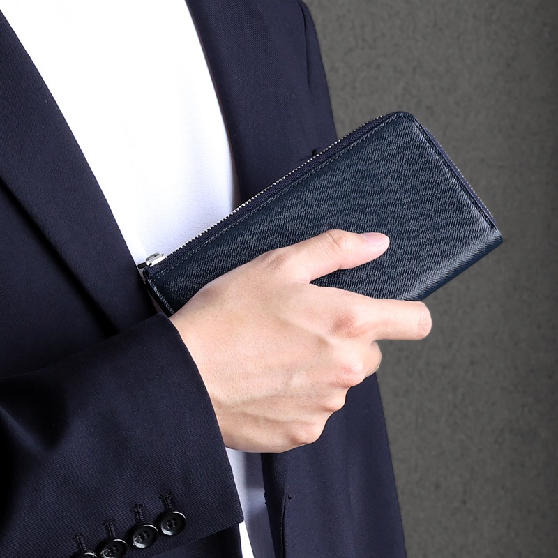 素材の上質さと、使いやすさを追求した設計の両方を兼ね備えた、洗練されたコンパクト長財布です。