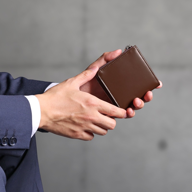 お財布は一般的な長財布の半分のサイズであり、小さな鞄にも入れられるので、場所を取らずに便利に持ち運びが可能です。