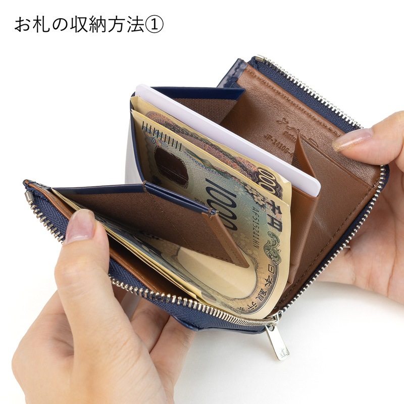 ファスナーを開くワンアクションでお札、小銭、カード、鍵の全てに手が届くため、財布の向きを変える手間がありません。