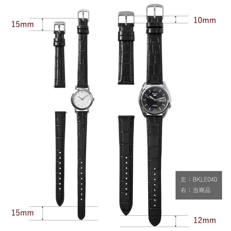 通常のバンドサイズ(画像はBKLE040)と比較して、剣先側、美錠側ともに10mmほど長くなっています。ゆったり着用したい方におすすめです。