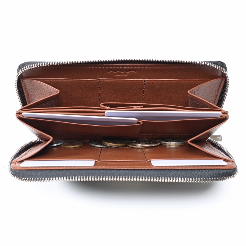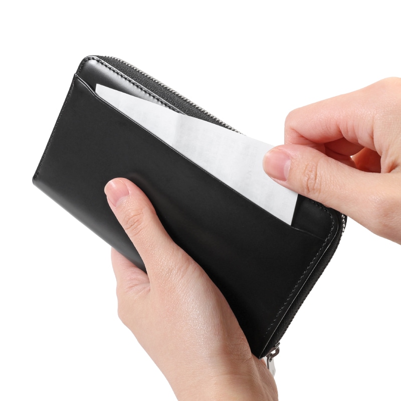 お札は中央のカードポケットとの間に、小銭やレシートは中央のカードポケットを境に左右に大きく開くマルチポケットに収納可能です。