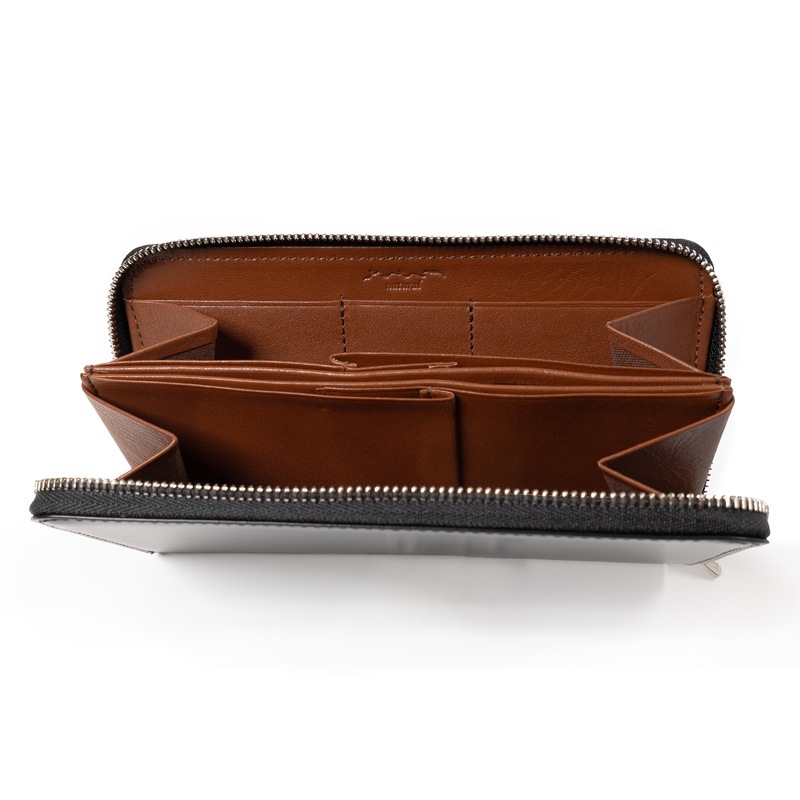 横幅は1万円札とほぼ同じ寸法ですが、仕切りとマチを縫い付けずに可動域を広げることで、出し入れのしやすさとコンパクトさを実現しています。